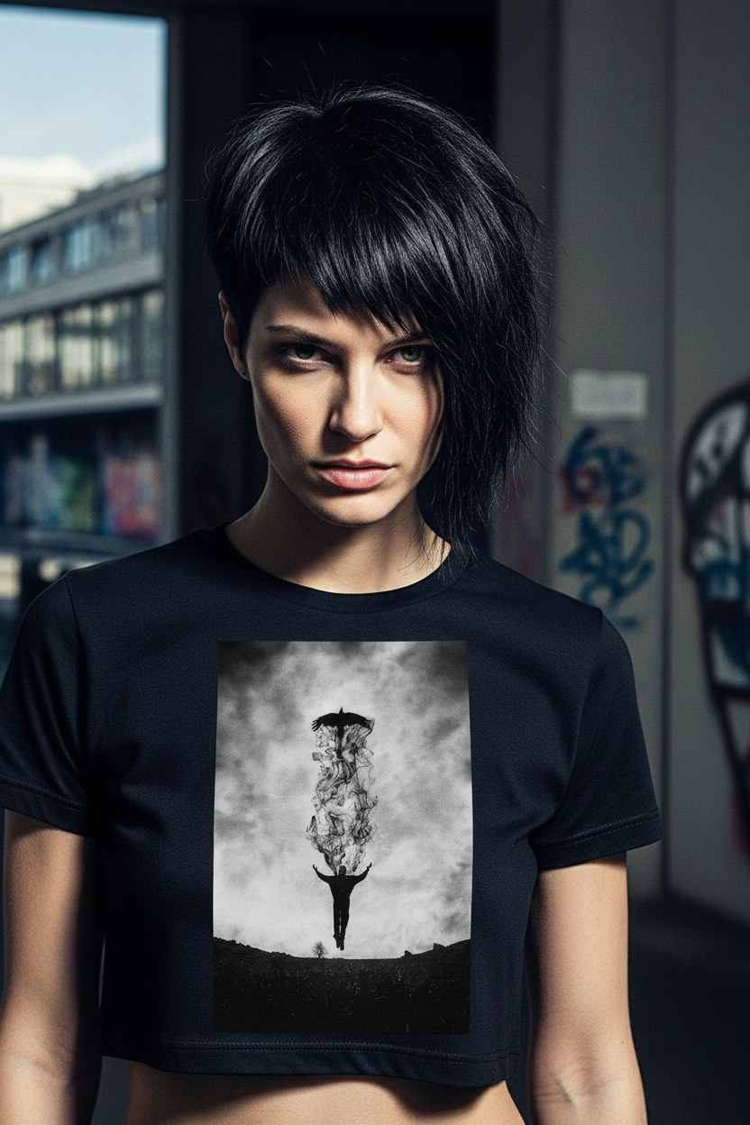 Damen – Cropped Tee – Ascension Raven Print – Frontprint