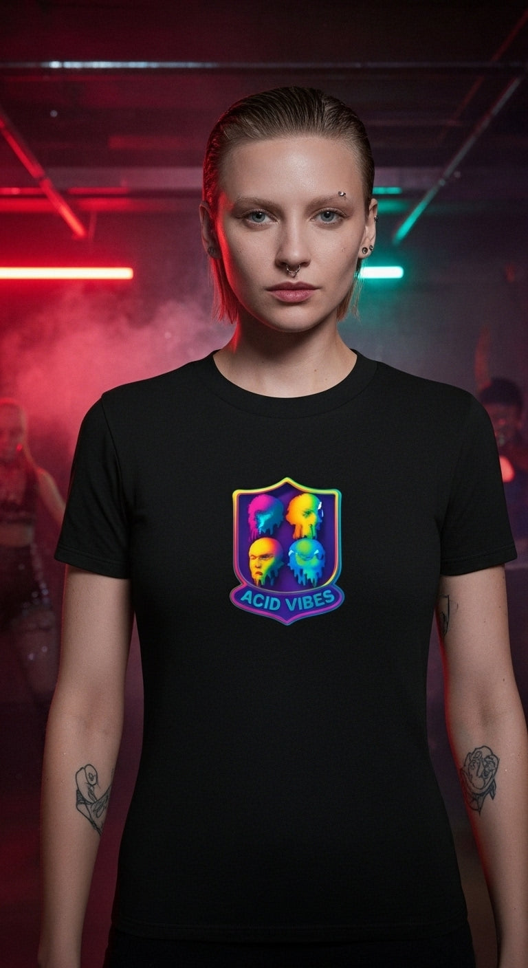 Tauche ein in die Nacht und lass dich von den Acid Vibes inspirieren – dieses Shirt ist dein Ticket für unvergessliche Momente und pure Selbstentfaltung auf dem Dancefloor.