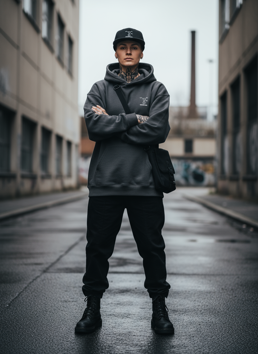 • Streetwear inspiriert von Minimalismus, Techno & Kink